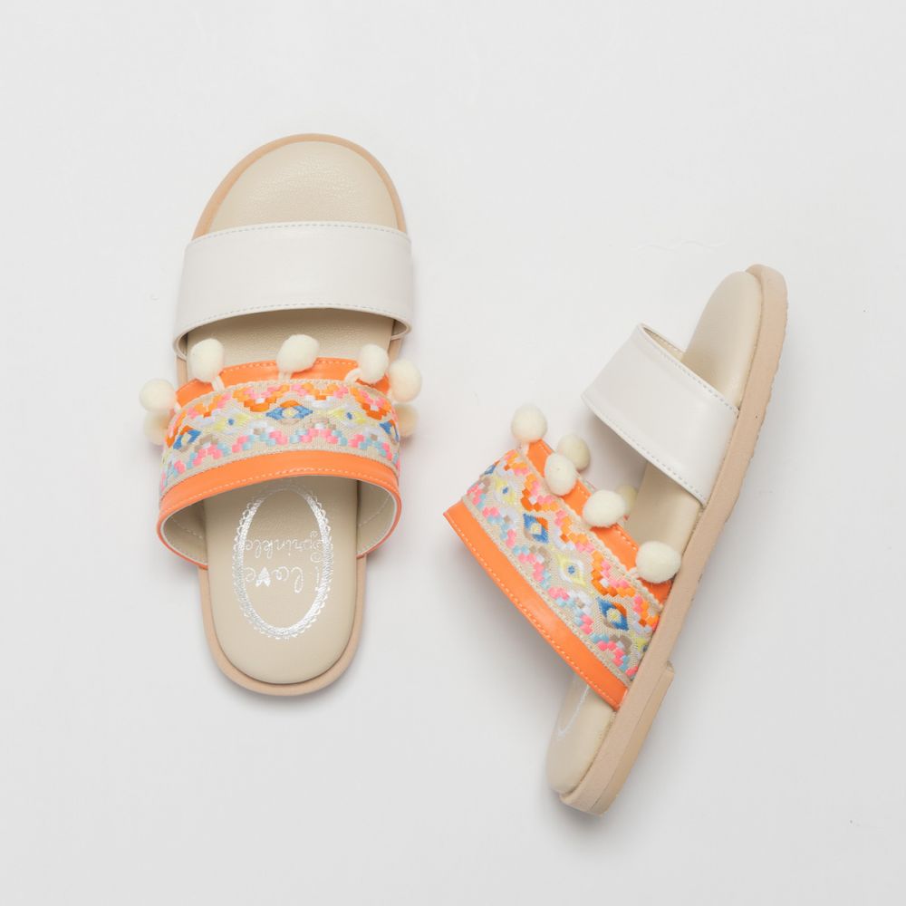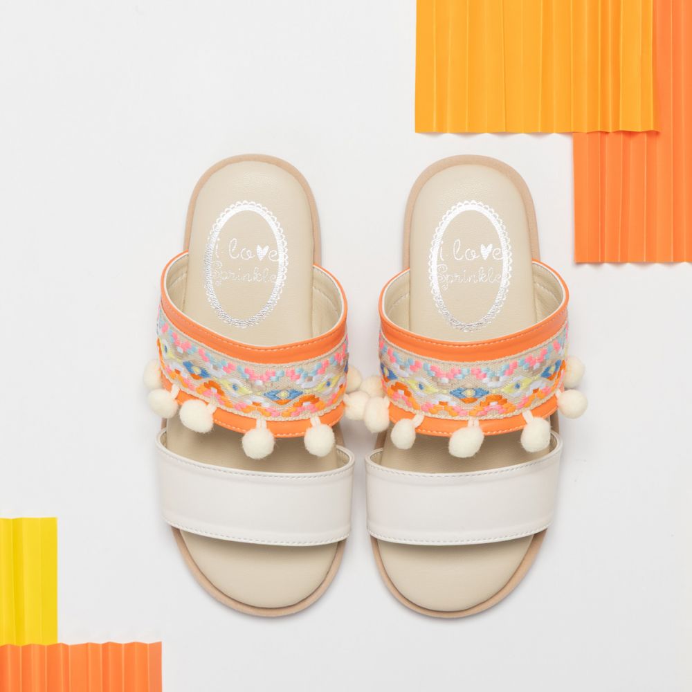 波西米亞風橘色涼拖鞋